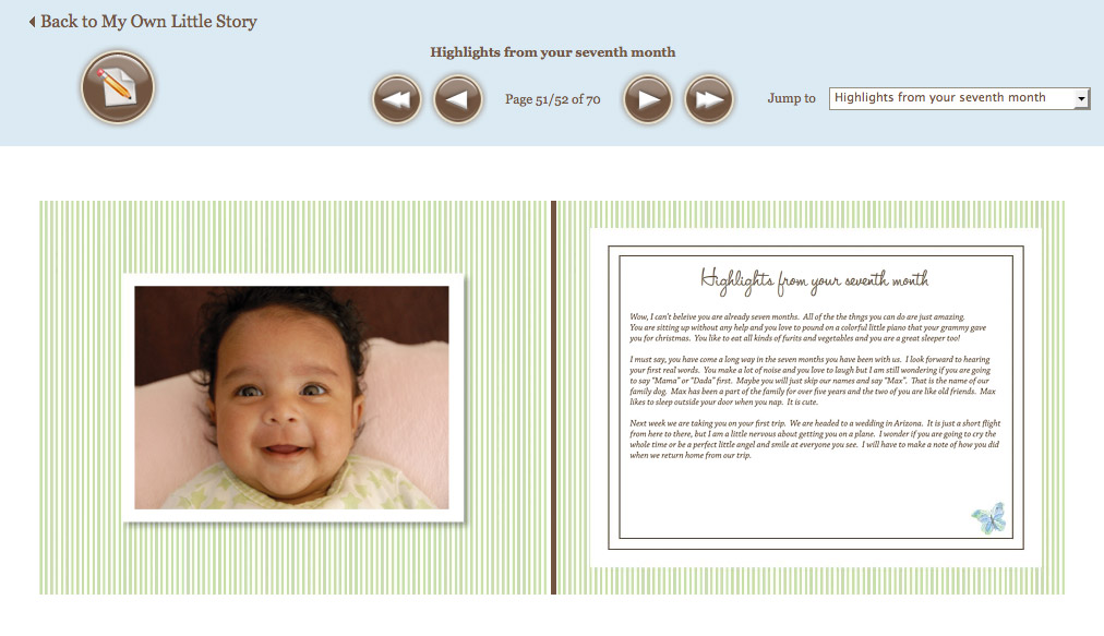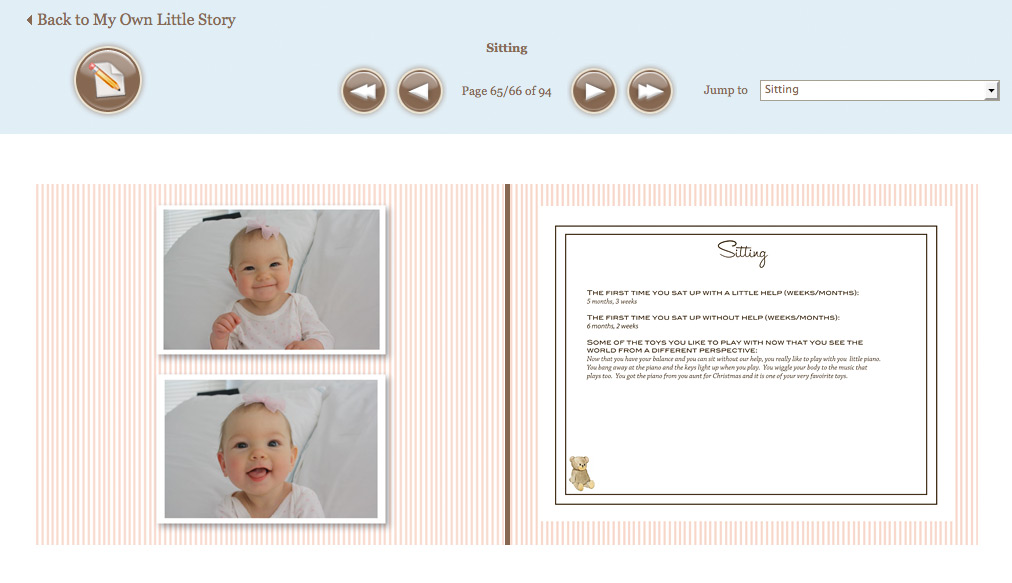 Samples of our Milestone Memory System email reminders are pictured below. Once we have your child's birth date/due date we will start sending you timely emails (twice a month) that coincide with your child's development. Our emails are brief, to the point and contain a link directly to your child's story. Just click the link and add your thoughts.