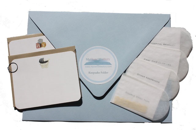 All of our gift vouchers come with a complimentary "Keepsake Folder" (pictured on the left) perfect for storing ultra-sound photos, birth announcements or shower invitations. In addition, we have included and labeled vellum envelopes for enclosing your child's hospital bracelet and first hair clippings- complete with double stick tape for securing your treasures in a printed book. Finally, we couldn't resist sharing two of our most popular stationery designs- they make a perfect thank-you note or gift enclosure. Be sure to enter the coupon code: GIFT to receive $6 dollars credit on your shipping!