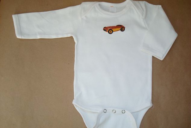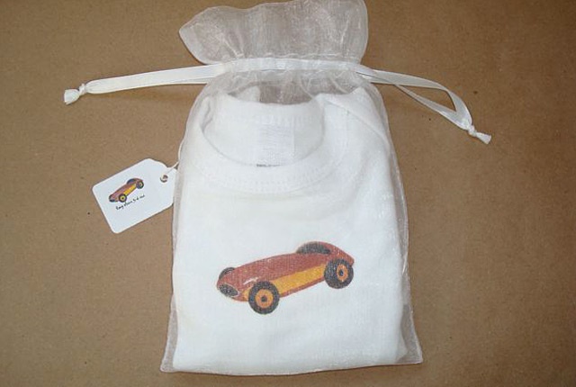Our 100% cotton vintage screened onsie is so soft and durable, you might wish we made adult sizes. Packaged in a reusable organza bag complete with gift tag. Available in long sleeve and short sleeve styles.