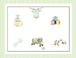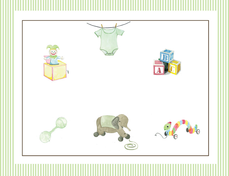 This book features a light green striped background with simple gender-neutral hand-painted graphics on several of the pages.