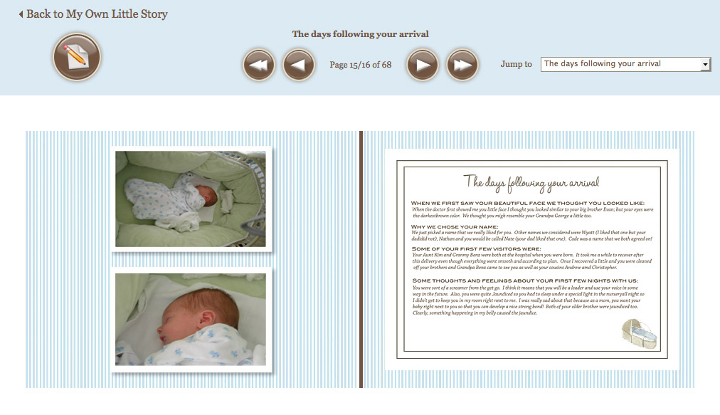 Samples of our Milestone Memory System email reminders are pictured below. Once we have your child's birth date/due date we will start sending you timely emails (twice a month) that coincide with your child's development. Our emails are brief, to the point and contain a link directly to your child's story. Just click the link and add your thoughts.