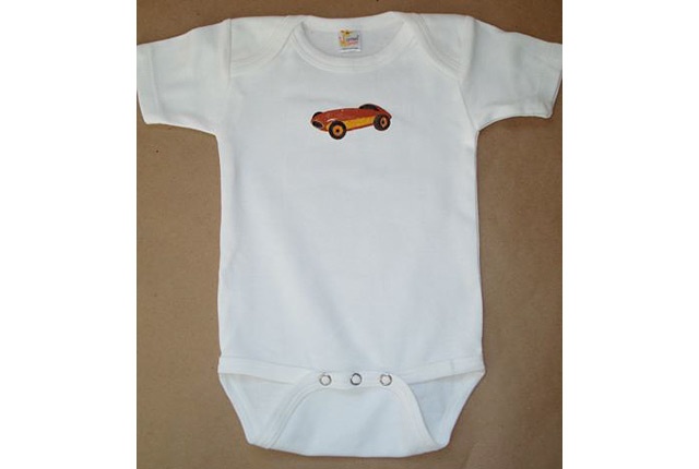 Our 100% cotton vintage screened onsie is so soft and durable, you might wish we made adult sizes. Packaged in a reusable organza bag complete with gift tag. Available in long sleeve and short sleeve styles.